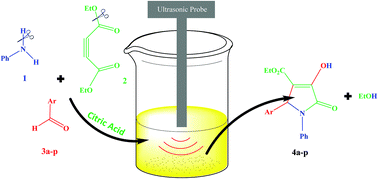 Synthesis of pyrrolidinone derivatives from aniline, an aldehyde and diethyl acetylenedicarboxylate in an ethanolic citric acid solution under ultrasound irradiation