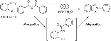 Rapid production of benzazole derivatives by a high-pressure and high-temperature water microflow chemical process