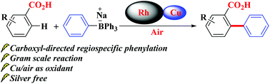 Rhodium-catalyzed regiospecific C–H ortho-phenylation of benzoic acids with Cu/air as an oxidant