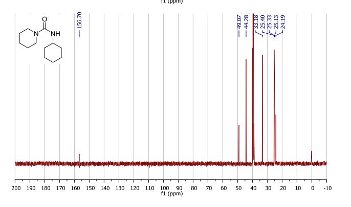 13C NMR: δ 156.7, 49.1, 44.3, 33.2, 25.4, 25.3, 25.1, 24.2 ppm;