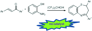 Hexafluoro-2-propanol as the solvent allows a catalyst free domino approach to 2,3-dihydro-1,5-benzothiazepines in up to 98% yield.